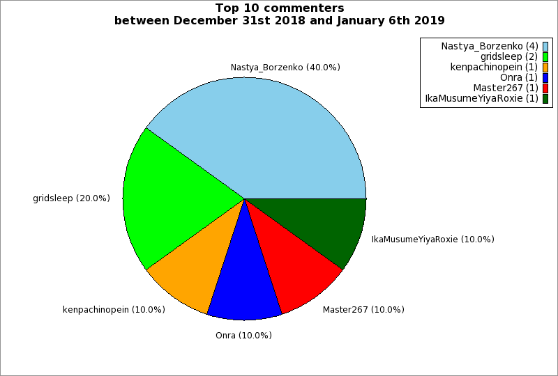 | Top 10 commenters between December 31st 2018 and January 6th 2019 | ||