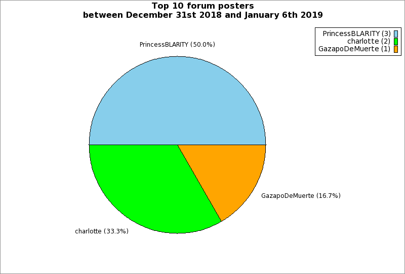 | Top 10 forum posters between December 31st 2018 and January 6th 2019 | ||