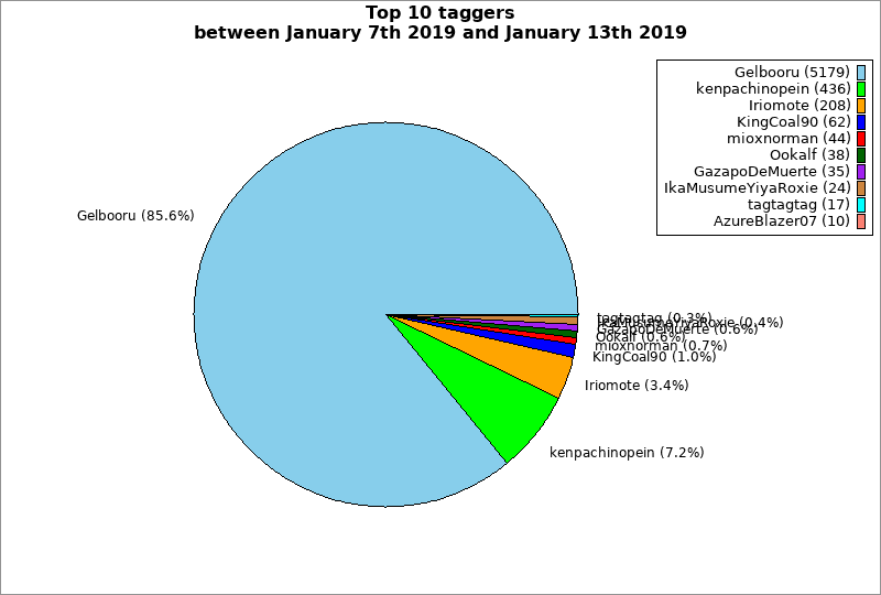 | Top 10 taggers between January 7th 2019 and January 13th 2019 | ||