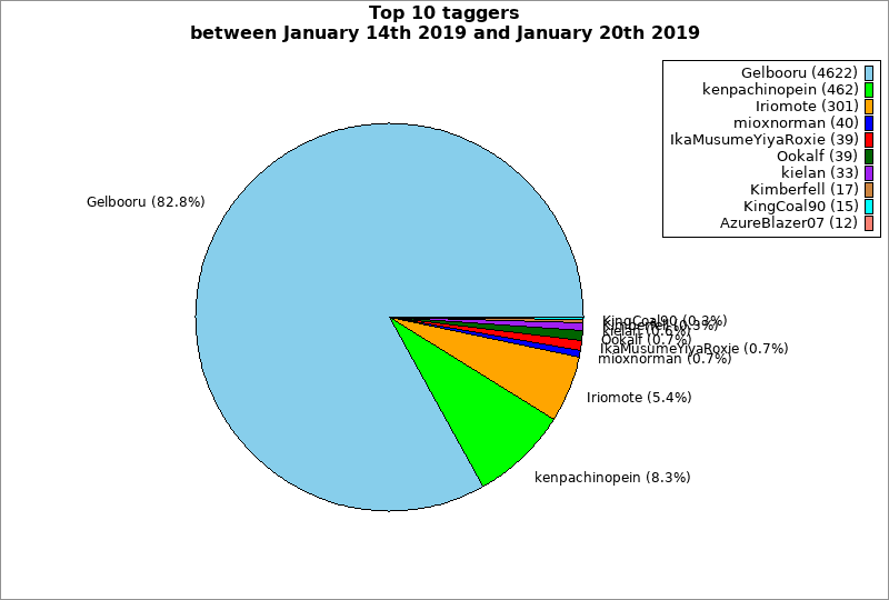 | Top 10 taggers between January 14th 2019 and January 20th 2019 | ||