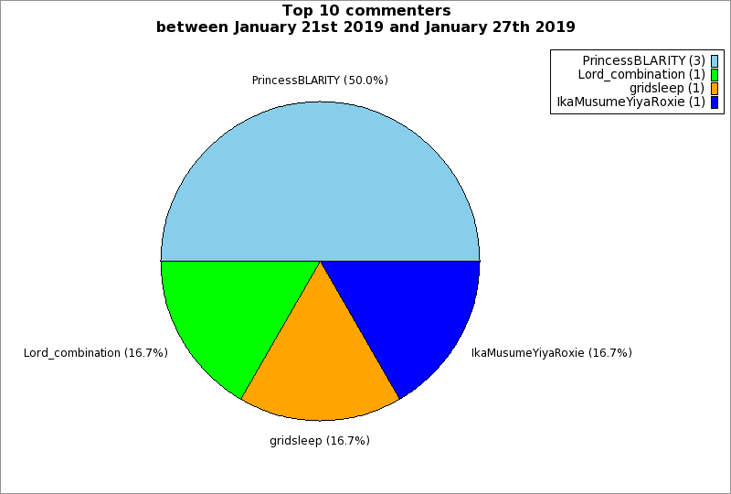 | Top 10 commenters between January 21st 2019 and January 27th 2019 | ||