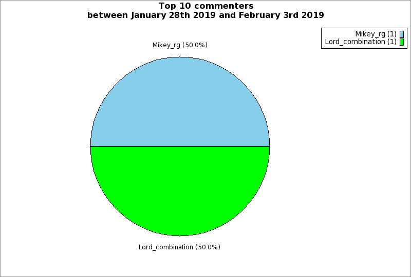 | Top 10 commenters between January 28th 2019 and February 3rd 2019 | ||