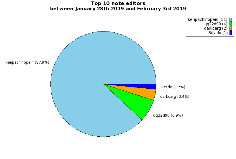 | Top 10 note editors between January 28th 2019 and February 3rd 2019 | ||