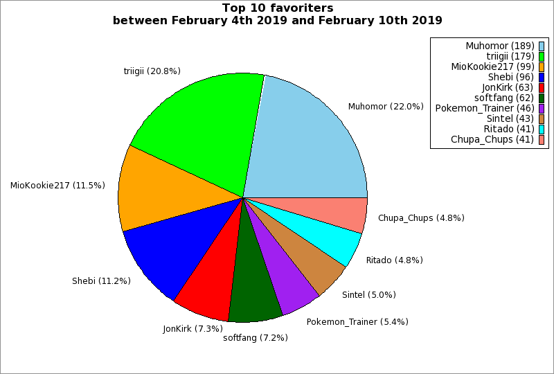 | Top 10 favoriters between February 4th 2019 and February 10th 2019 | ||