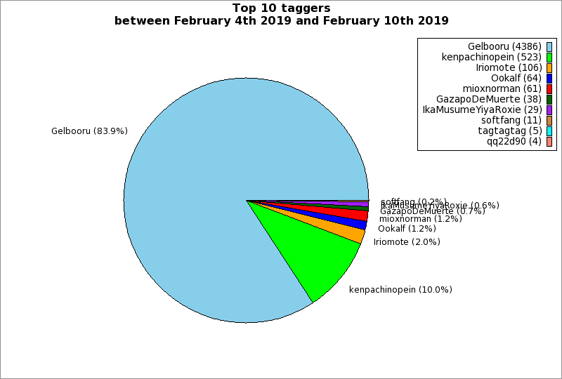 | Top 10 taggers between February 4th 2019 and February 10th 2019 | ||