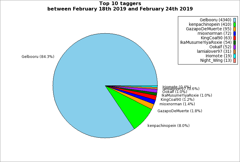 | Top 10 taggers between February 18th 2019 and February 24th 2019 | ||