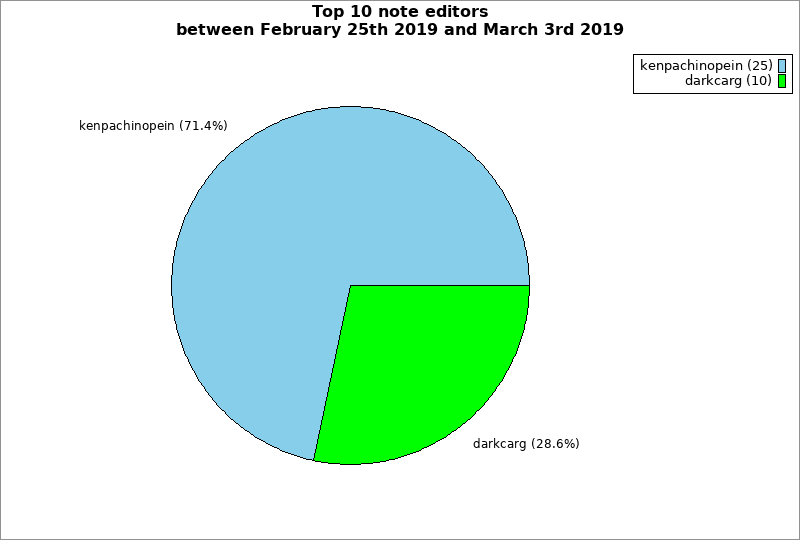 | Top 10 note editors between February 25th 2019 and March 3rd 2019 | ||