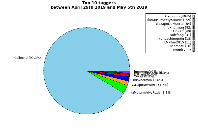 | Top 10 taggers between April 29th 2019 and May 5th 2019 | ||