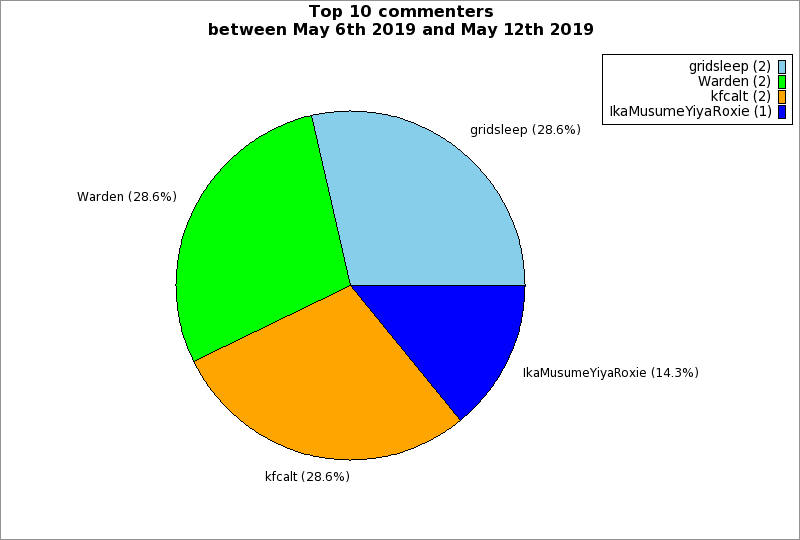 | Top 10 commenters between May 6th 2019 and May 12th 2019 | ||