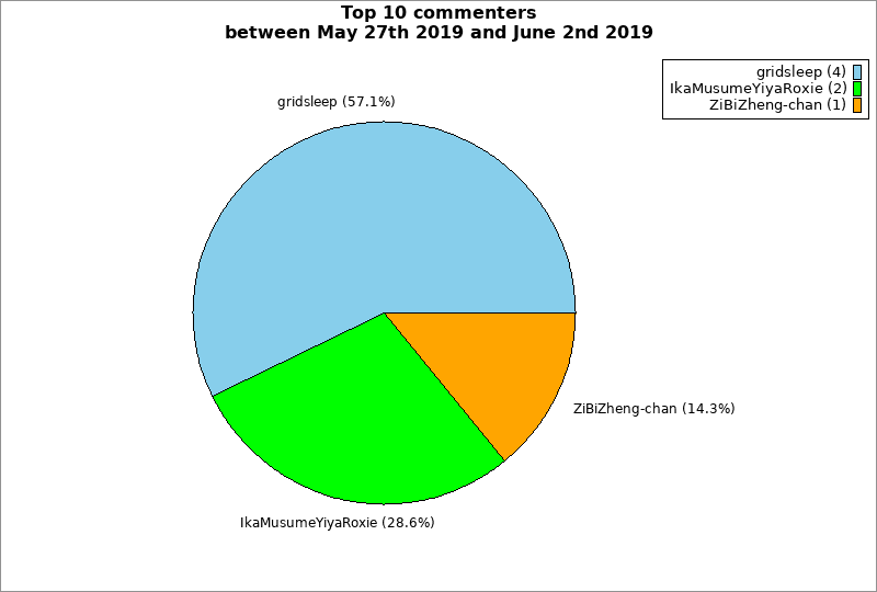| Top 10 commenters between May 27th 2019 and June 2nd 2019 | ||