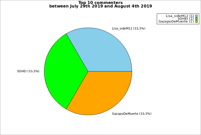| Top 10 commenters between July 29th 2019 and August 4th 2019 | ||