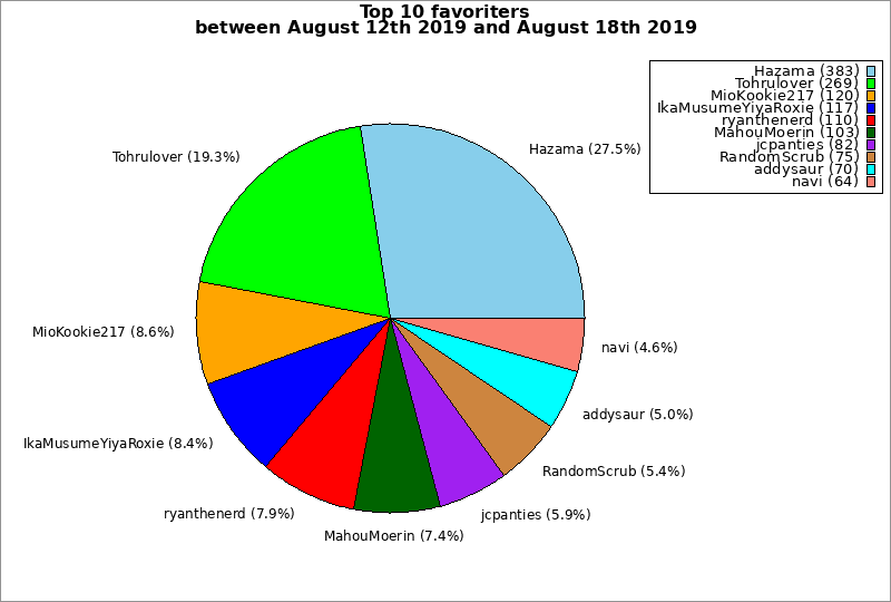 | Top 10 favoriters between August 12th 2019 and August 18th 2019 | ||