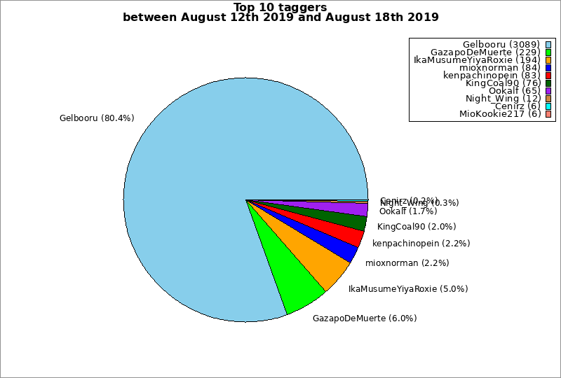 | Top 10 taggers between August 12th 2019 and August 18th 2019 | ||