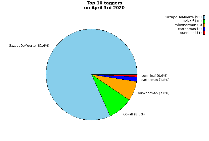 | Top 10 taggers on April 3rd 2020 | ||