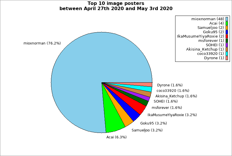 | Top 10 image posters between April 27th 2020 and May 3rd 2020 | ||