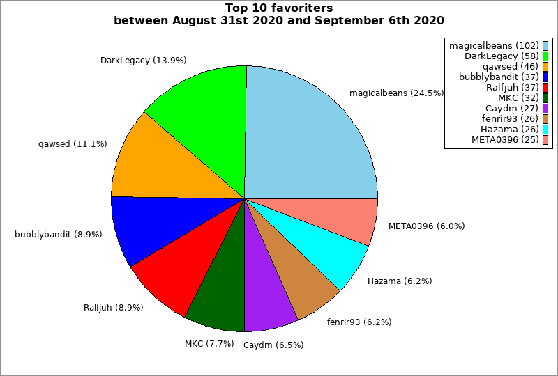 | Top 10 favoriters between August 31st 2020 and September 6th 2020 | ||