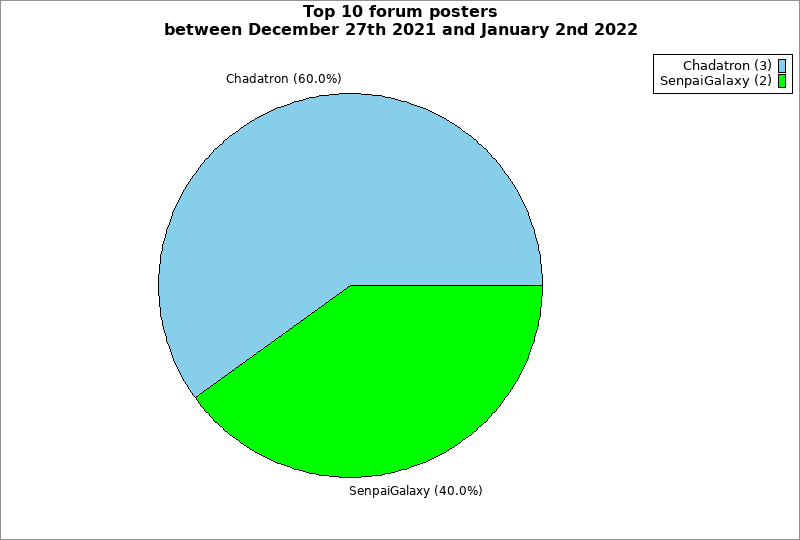 | Top 10 forum posters between December 27th 2021 and January 2nd 2022 | ||