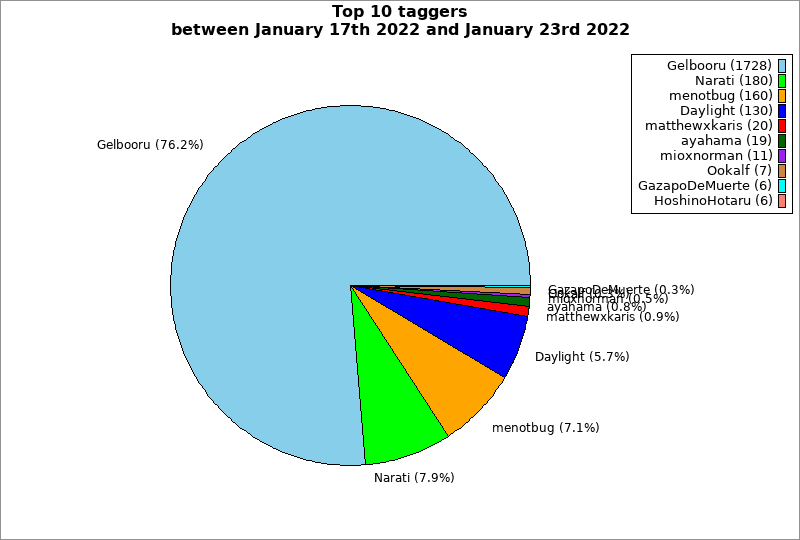 | Top 10 taggers between January 17th 2022 and January 23rd 2022 | ||