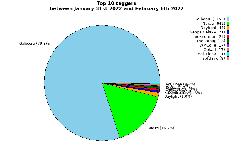 | Top 10 taggers between January 31st 2022 and February 6th 2022 | ||