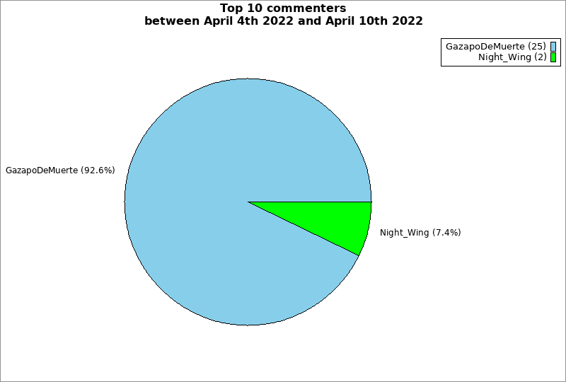 | Top 10 commenters between April 4th 2022 and April 10th 2022 | ||