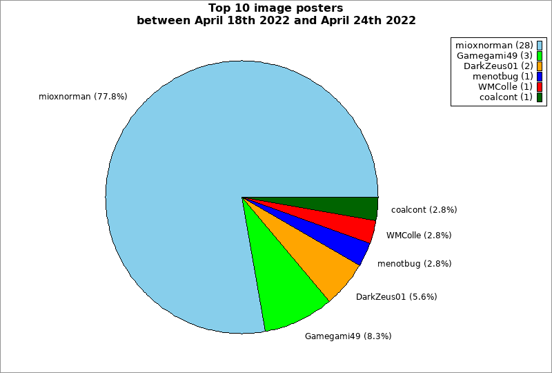 | Top 10 image posters between April 18th 2022 and April 24th 2022 | ||