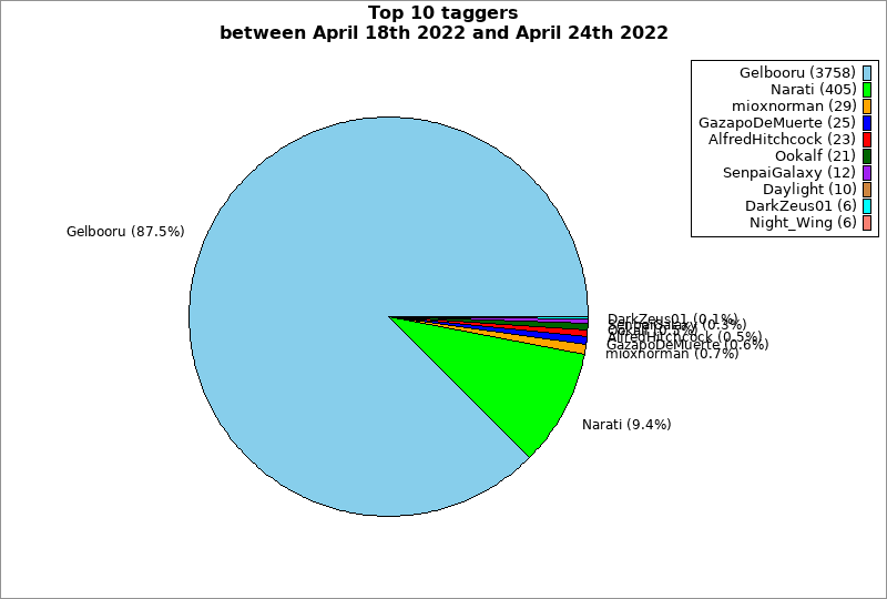 | Top 10 taggers between April 18th 2022 and April 24th 2022 | ||