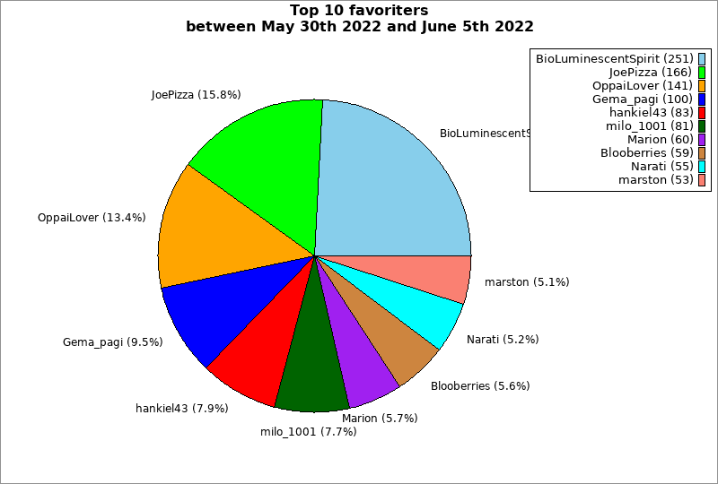 | Top 10 favoriters between May 30th 2022 and June 5th 2022 | ||