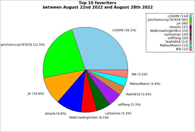 | Top 10 favoriters between August 22nd 2022 and August 28th 2022 | ||