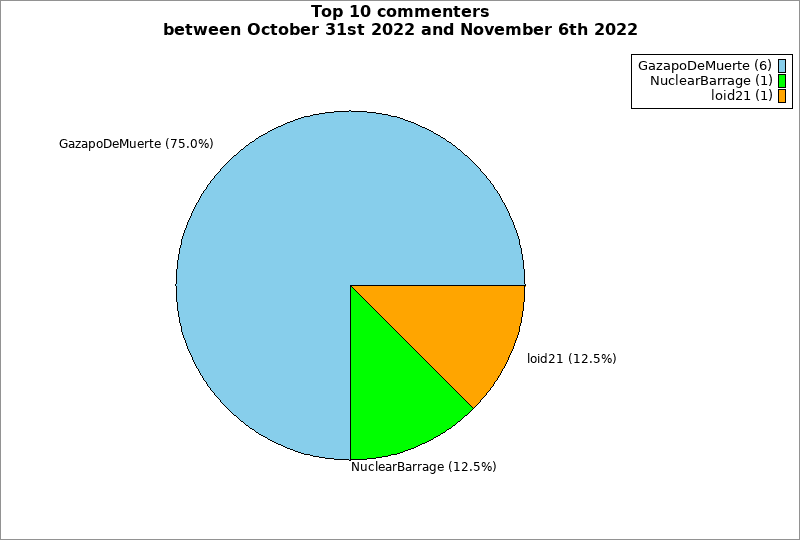 | Top 10 commenters between October 31st 2022 and November 6th 2022 | ||