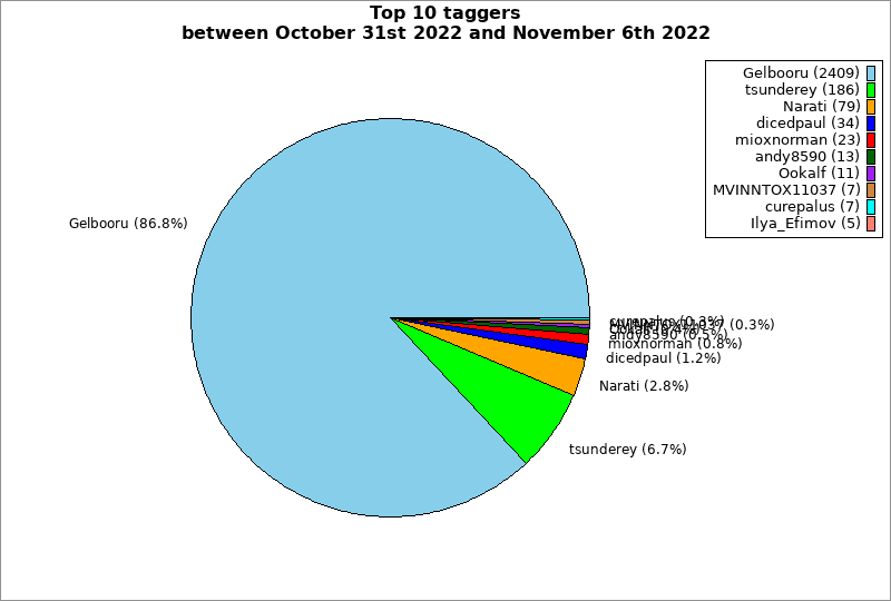 | Top 10 taggers between October 31st 2022 and November 6th 2022 | ||