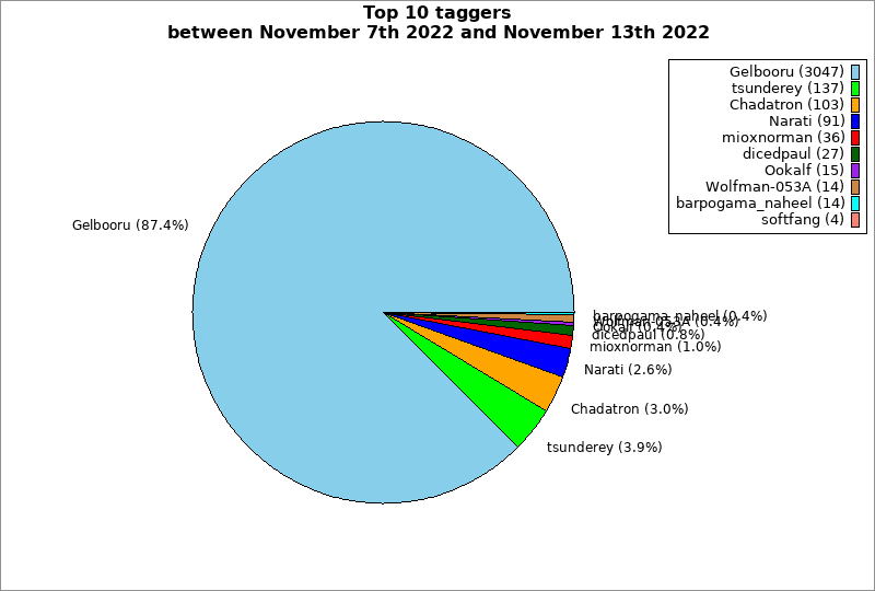 | Top 10 taggers between November 7th 2022 and November 13th 2022 | ||