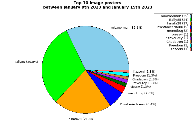 | Top 10 image posters between January 9th 2023 and January 15th 2023 | ||