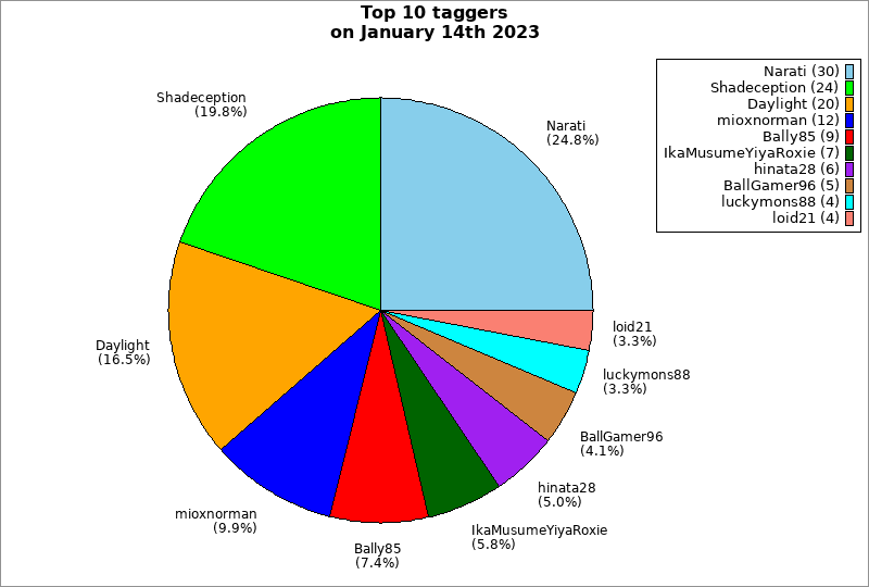 | Top 10 taggers on January 14th 2023 | ||