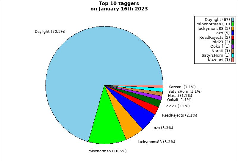 | Top 10 taggers on January 16th 2023 | ||