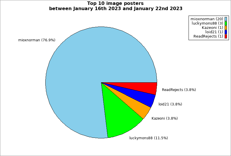 | Top 10 image posters between January 16th 2023 and January 22nd 2023 | ||