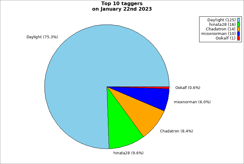 | Top 10 taggers on January 22nd 2023 | ||