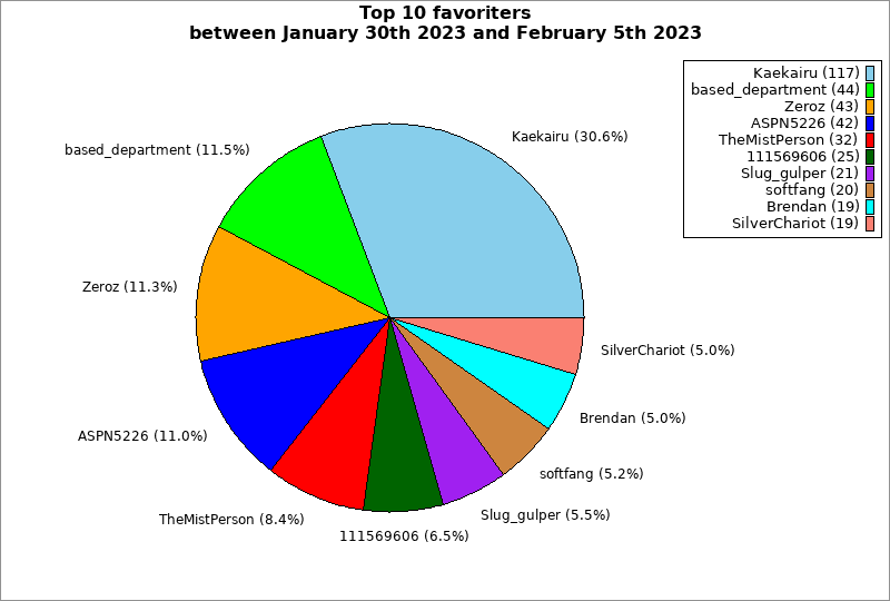 | Top 10 favoriters between January 30th 2023 and February 5th 2023 | ||