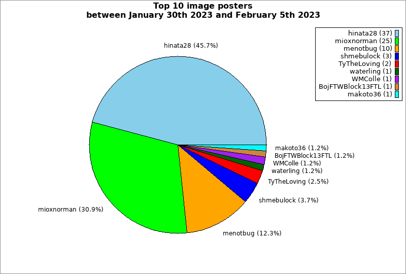 | Top 10 image posters between January 30th 2023 and February 5th 2023 | ||