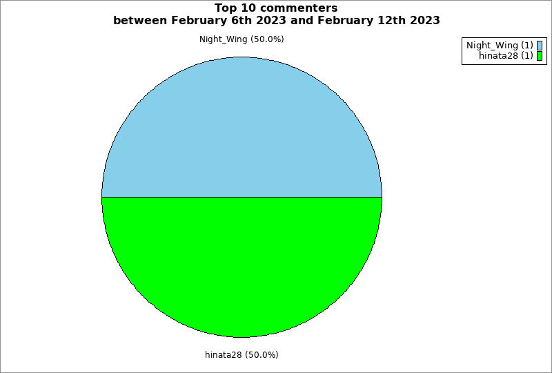 | Top 10 commenters between February 6th 2023 and February 12th 2023 | ||