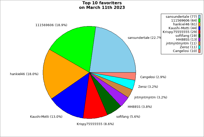 | Top 10 favoriters on March 11th 2023 | ||