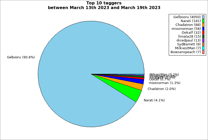 | Top 10 taggers between March 13th 2023 and March 19th 2023 | ||