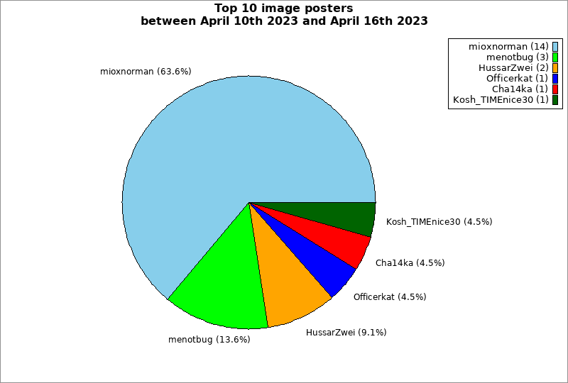 | Top 10 image posters between April 10th 2023 and April 16th 2023 | ||