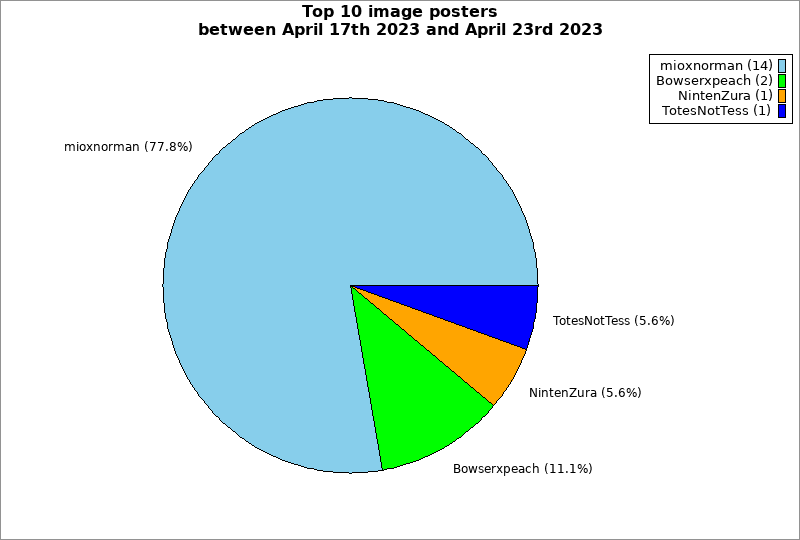 | Top 10 image posters between April 17th 2023 and April 23rd 2023 | ||