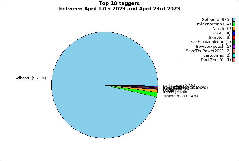 | Top 10 taggers between April 17th 2023 and April 23rd 2023 | ||