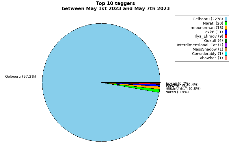 | Top 10 taggers between May 1st 2023 and May 7th 2023 | ||