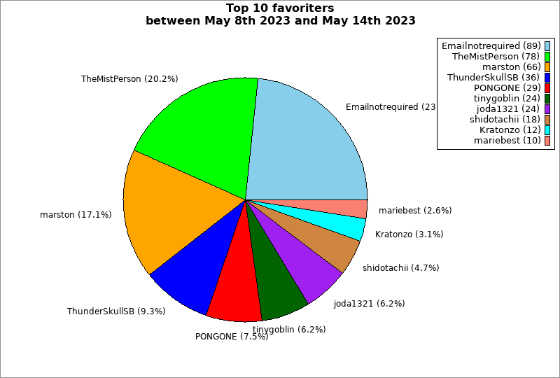| Top 10 favoriters between May 8th 2023 and May 14th 2023 | ||
