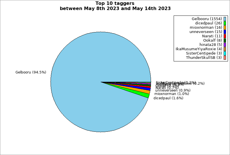 | Top 10 taggers between May 8th 2023 and May 14th 2023 | ||