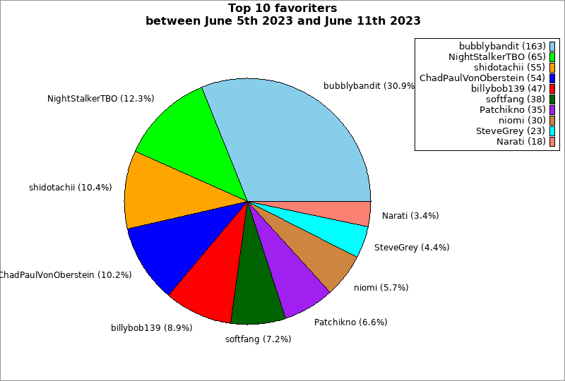 | Top 10 favoriters between June 5th 2023 and June 11th 2023 | ||