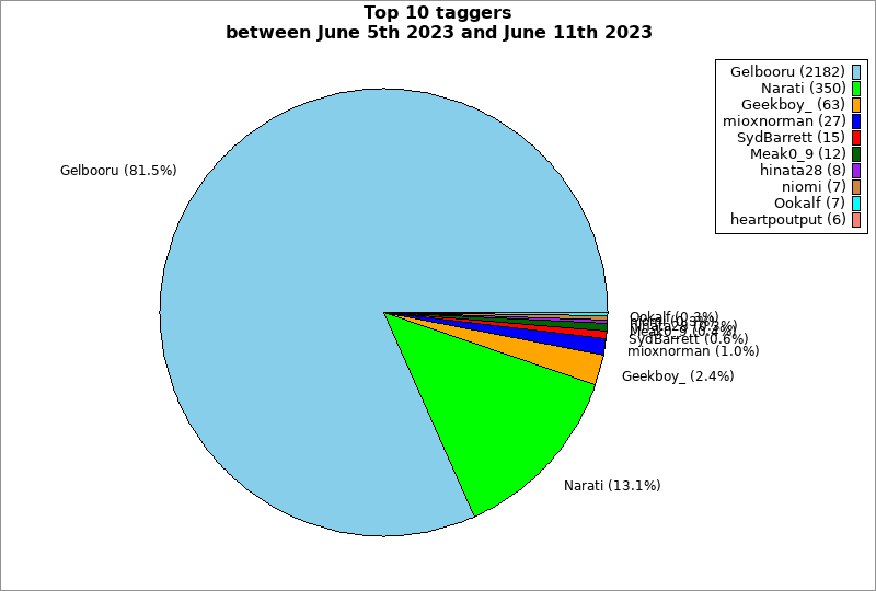 | Top 10 taggers between June 5th 2023 and June 11th 2023 | ||