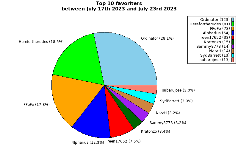 | Top 10 favoriters between July 17th 2023 and July 23rd 2023 | ||